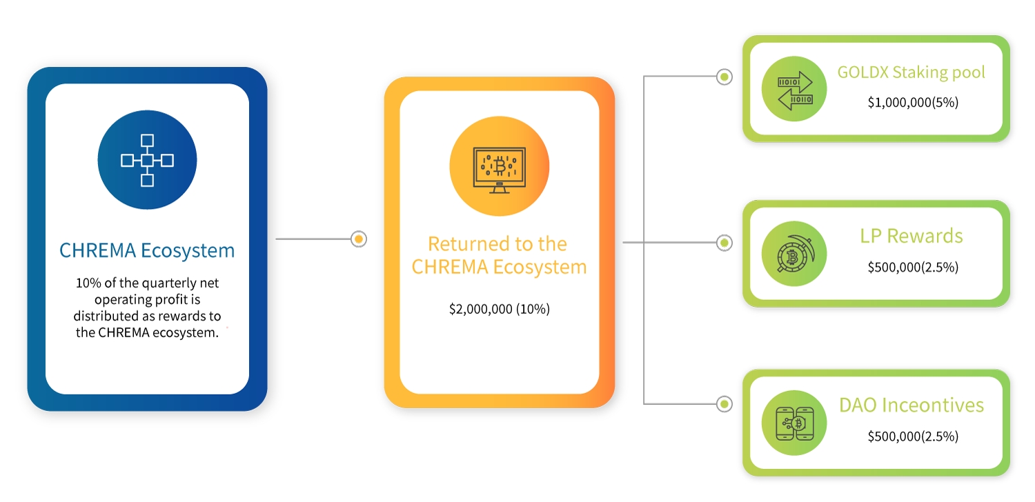 A fixed percentage of actual gold sales revenue is converted into the CHREMA ecosystem.